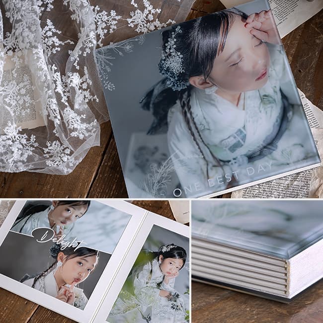 こちらのフォトアルバムは、他にはない上質さと存在感を兼ね備えた特別な一冊です。表紙にはアクリル、中面全てにクリスタルコートを施し、写真が光を受けて見るたびに新鮮な感動を味わえます。お値段に見合う価値あるアートです。